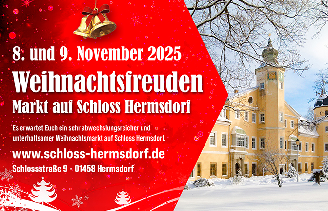 8. und 9. November 2025 - Weihnachtsfreuden auf Schloss Hermsdorf Der 1. Sächsische Weihnachtsmarkt am 8. und 9. November 2025 im Schloss Hermsdorf bietet eine wunderbare Gelegenheit, sich auf die […]